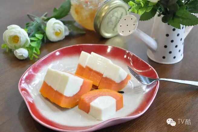 ▲木瓜椰汁糕。白色的是香浓的椰汁糕,糕底是木瓜,口感够特别的,而且不会很甜