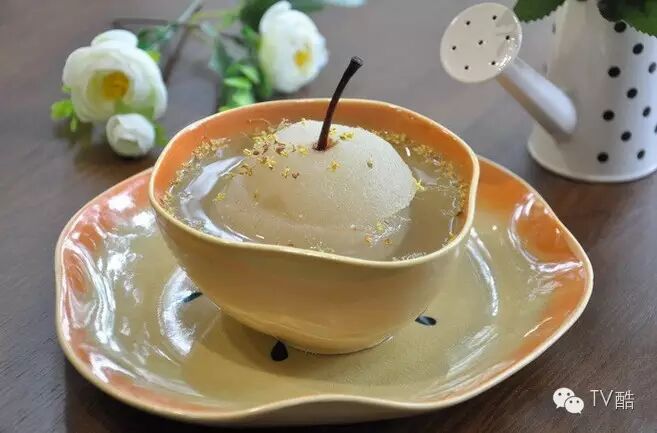 ▲桂香川贝炖雪梨。冰糖水里有淡淡的桂花香,雪梨炖得很软,吃起来非常滋润,单身汪必点,你懂的