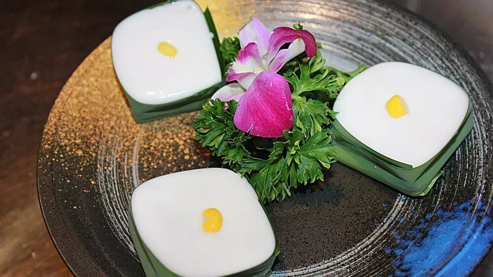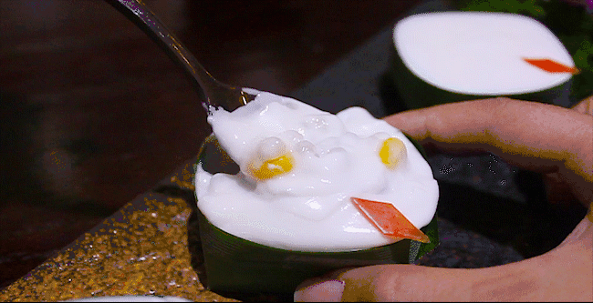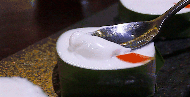 纯鲜椰浆加热过程中加入食用淀粉,这个过程颇为关键,温度和比例刚刚好,才能使椰浆凝固得像布丁一般绵滑润口。