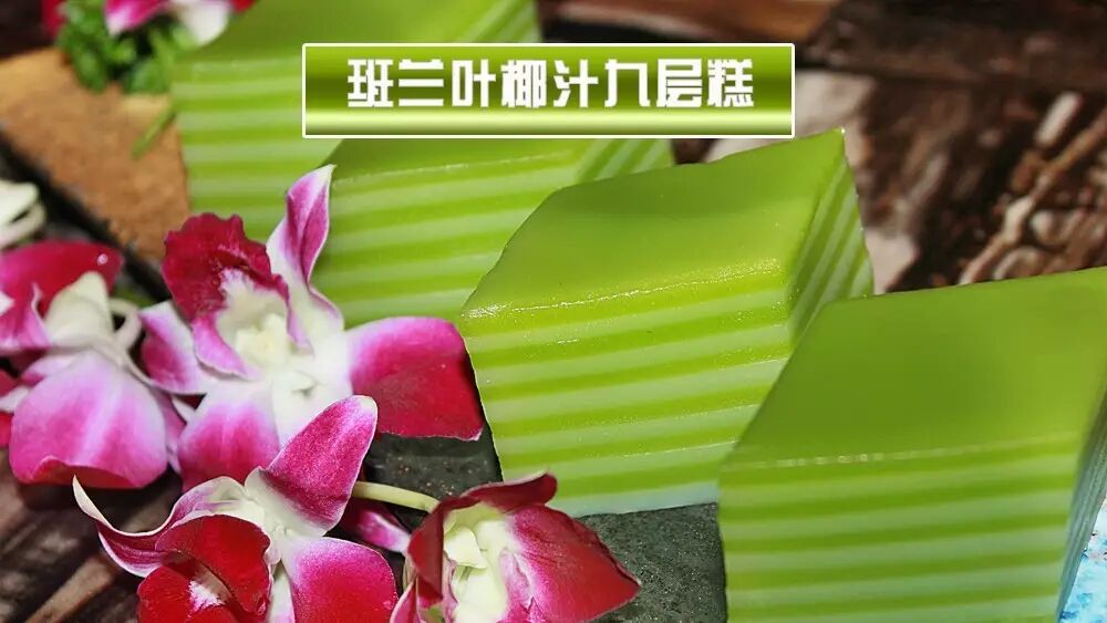 冷藏成型后的糕体,口感丝丝清凉,椰浆的浓滑与班兰叶的清香交织,甜度恰到好处,瞬间仿佛置身于东南亚的沙滩海岛,热带浓郁风情营造十足的味蕾满足感