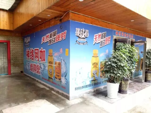 下图为“挑战者”维生素饮料在某市场的网咖形象店打造,从地贴、X展架、桌牌到电脑开机画面、专用陈列,“挑战者”维生素饮料实现全面覆盖式宣传!