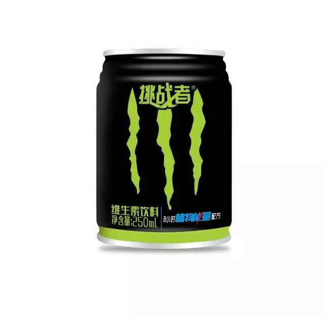 “挑战者”维生素饮料瞄准90后、00后新生代消费者,主销学校、网吧、烟酒店、宾馆四个渠道,采用主流的250ml的罐装包装。黑色罐体与绿色的相结合,既体现了神秘特质也传递了全天然健康的产品理念,充分满足了目标消费群对个性化与特定化产品的追求。