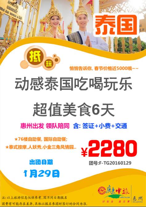 及时了解旅游信息,总有一款适合你……旅游热线:麦地(世纪名都)-2672260、下埔(紫荆大厦)-2699699、东平(吉之岛商场)-2153238、三环(天虹商场)-2732589、仲恺(T-Park公园)-2608766每当岁月正好,肚子咕咕叫的时候,小编总会想到一种美食菜系...其实泰式料理说难不难说简单也不简单,今天小编就来传授两款最受欢迎泰式料理秘籍!让你家的年夜饭也来泰式风味!泰国人蒸米饭有很意思,炉子上先置一个大铁盆,放适量的水,在竹编的容器里放上糯米,蒸一段时间后拿下来翻面,使得米饭不会太黏还有天然清香哦~煮好糯米饭要用椰汁浸泡,这种椰汁也得经过几个步骤烹煮的哦,把椰浆、三分之一杯糖、一勺盐加上新鲜斑兰叶一同放进锅里煮开,然后倒入糯米饭中放置15-20分钟。正宗的椰汁糯米饭,吃之前还要配上一小碟sauce,口味更浓重了!sauce是椰奶为主,加入一小勺盐和玉米粉煮成的哦~将新鲜的甜甜的芒果切好,放置在制作好的饭上面,就大功告成啦!香茅两根切段,三片青柠檬,幼茄8个,姜切片,九层塔和薄荷叶各一小撮,7-8个小红椒横切成小圈,口蘑切片,番茄切小丁。虾切下头部,去沙线。蛤蜊烫至开口。起油锅,放入少许橄榄油,虾头和虾身一同入锅煸炒至变色,取出备用。将小红椒,姜,香茅,番茄,蘑菇一同放入锅中煸炒。再加入适量的水,再加入虾头,柠檬片,九层塔,薄荷叶,烧开后加入椰浆和淡奶油,搅匀,换小火,煮20分钟。将虾身和焯过水的蛤蜊放入已调味后的汤,微煮即可,再加入些许香菜,美味的冬荫功大功告成!找个周末,在家好好尝试一下自己DIY的泰式料理吧!当然!收拾好行李,亲自飞到泰国,那是解馋的最佳办法!以上旅游信息仅供参考,因不同日期报名团费有可能存在差异,具体以报名参团时签订的合同为准。★长按二维码==》点击“识别图中二维码”==》点选“关注”,轻松订阅,获取最新旅游信息。注:出境游由广东中旅(深圳)旅行社有限公司委托代理招徕业务,委托方经营许可证号:L-GD-CJ00156, 地址:深圳市罗湖区桂园路1号,电话:0755-82352001。(深圳公司与惠州公司,法人同一个)