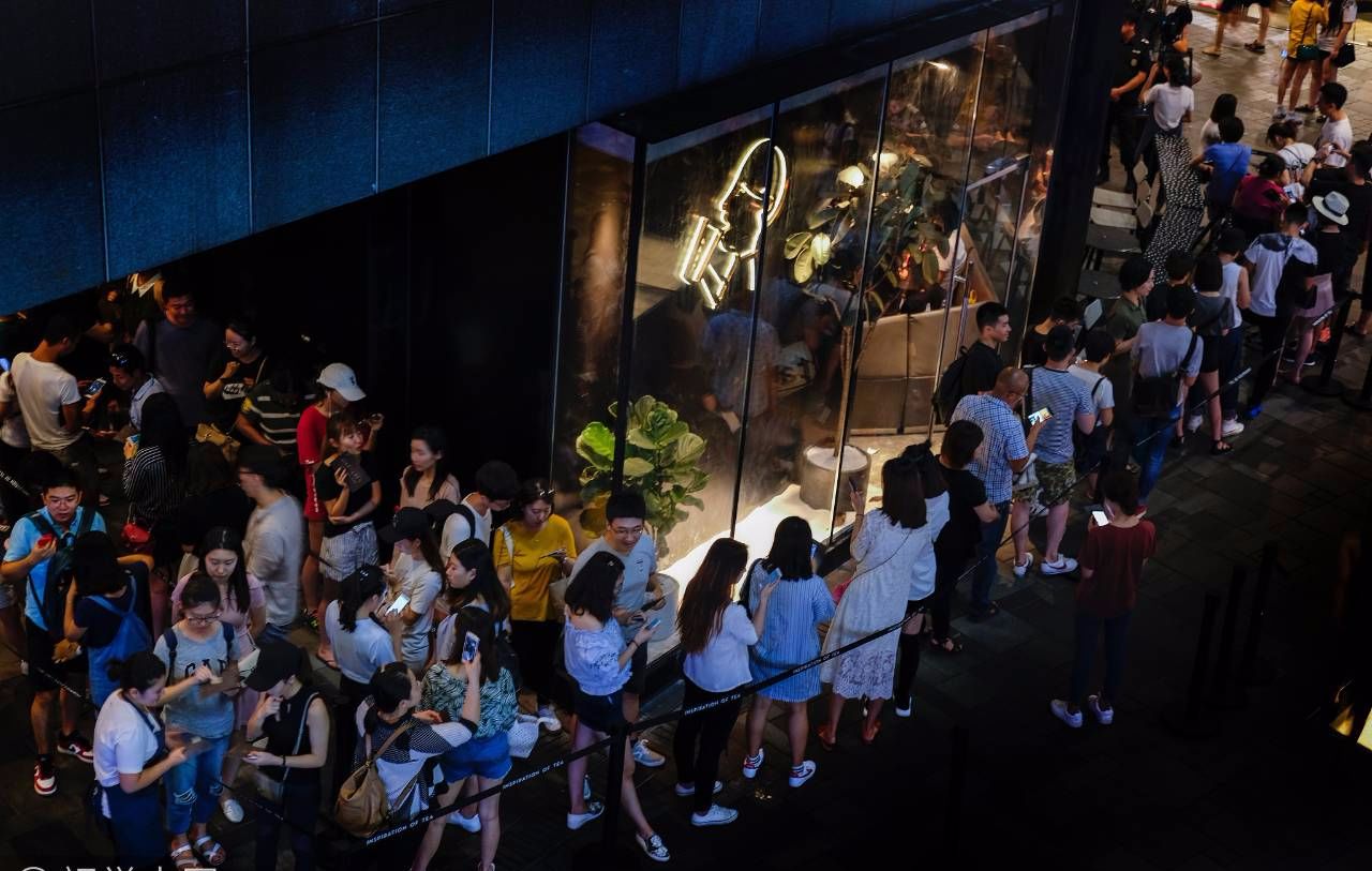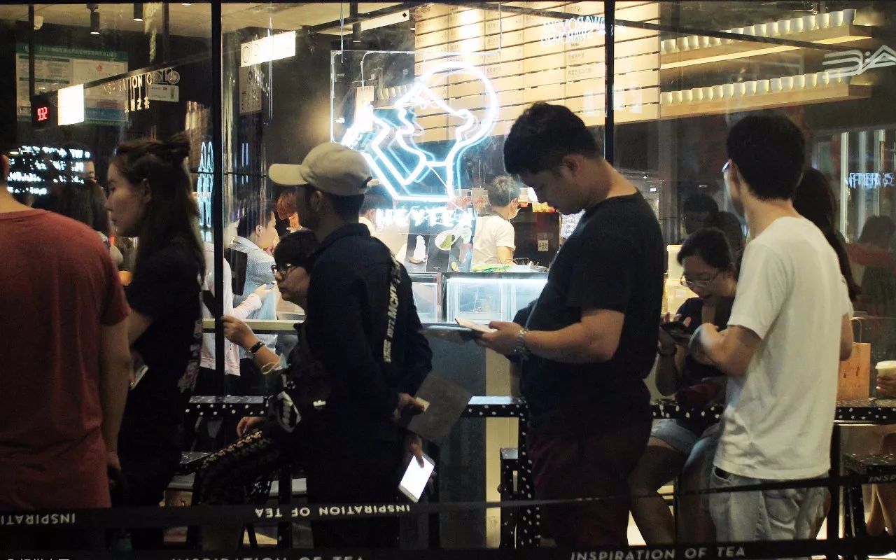 2017年8月20日晚上8点多,北京三里屯,人们还在排队买奶茶丨视觉中国