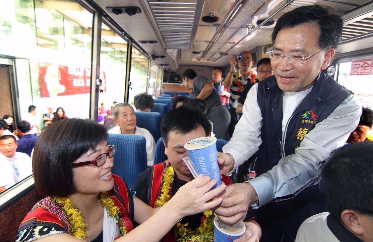 2011年厦门第一批赴台自由行的旅客在台北松山机场品尝“正宗台湾珍珠奶茶” | 视觉中国