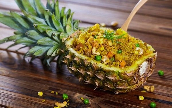 何况在泰国,选用上好的泰国香米,搭配了什锦蔬菜及爽脆腰果,咸咸酸酸甜甜的口感更是让人食欲大开,无法抗拒!原来像冷饭热炒这样简单的过气食材在泰国也是打拼出了一番天地呢~