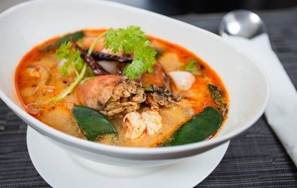 泰式最出名的冬阴功汤,又称酸辣海鲜汤。这道赫赫有名的菜,应该是无人不知无人不晓吧。将新鲜的大虾混合柠檬叶、香茅、辣椒、鱼露、花奶等辅料一起煲至出味,然后揭开锅食用即可。隔着屏幕都觉得香喷喷的!
