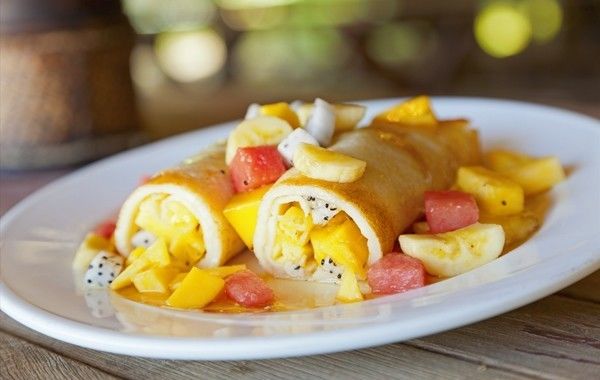 香蕉薄饼是将摊薄的面糊中加入切好的香蕉片,再将面糊折叠成方块状后淋上巧克力酱、炼乳等。想想饼内夹着香蕉片,吃上一口,绵软香甜的香蕉味立即抢占舌尖,美得不要不要的。