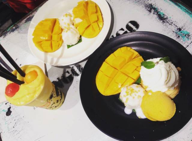这家店主打各种芒果甜品,除了芒果冰淇淋之外,还有各种芒果奶昔、芒果西米露。芒果香甜可口,敲极好吃!它的味道一点都不必名气差,位置也好找,就在曼谷Siam天桥下的屈臣氏后面。