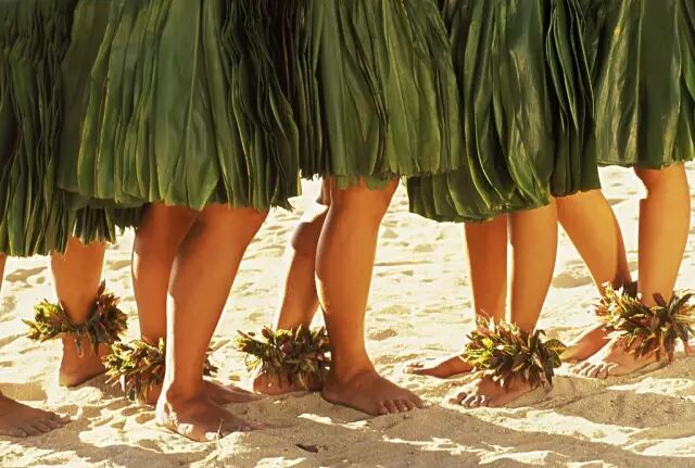 一群草裙女郎,在欢快的节奏里,踩着金色的沙滩