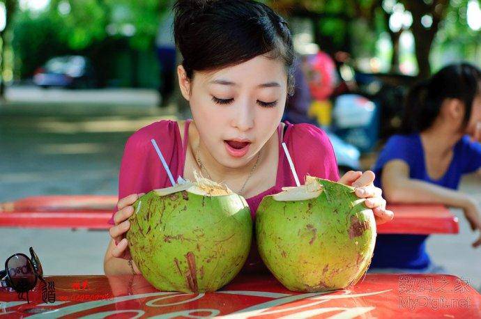 手拿花环,手捧纯正原汁原味椰子汁邀您享用.....