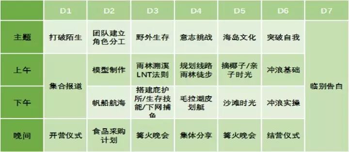 为了让大家深度感受海南岛的别样风情,从体验野外生存来锻炼孩子的意志力,设置了一系列的亲子活动,让孩子们7天时间变身成能独立扬帆起航、海上冲浪的小勇士