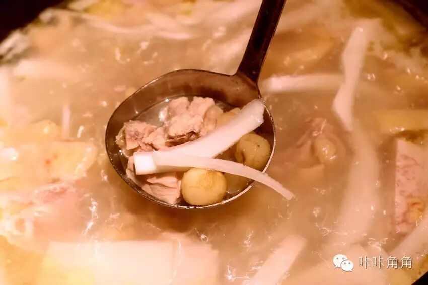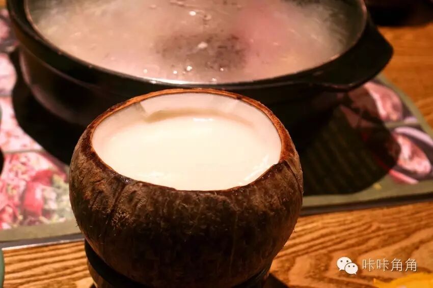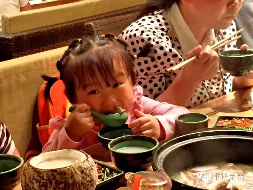 ➷吃椰子鸡的步骤是先喝汤再吃肉最后涮蔬菜,所以妈妈我要先喝汤!