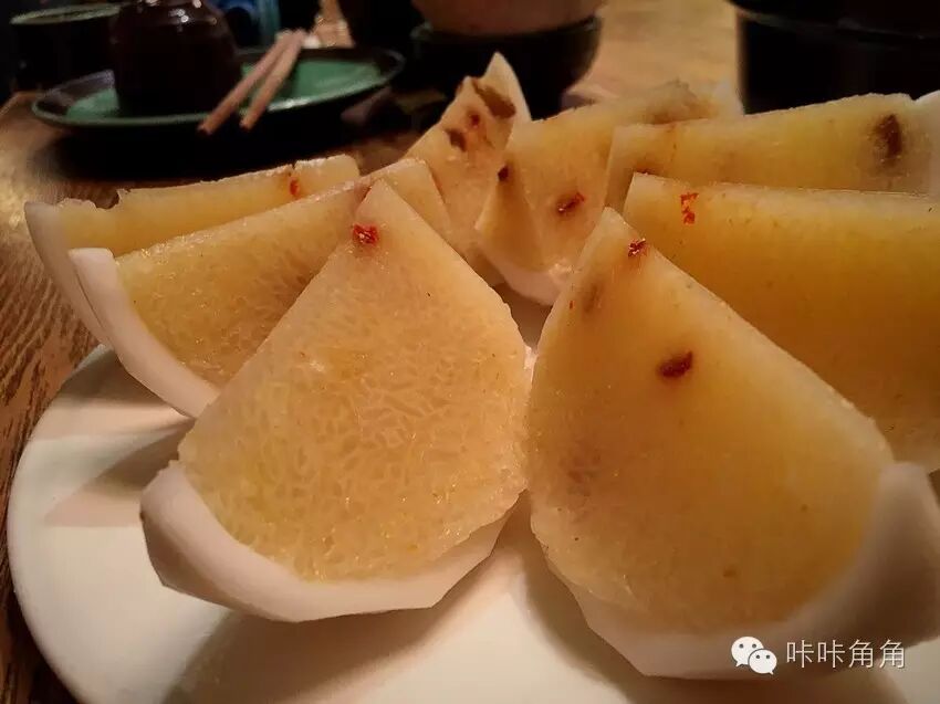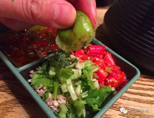 ➷在酱汁中滴上两滴金橘汁,酱油的微甜、辣椒的劲爽,拌上沙姜的微微辛辣和金橘的清酸,层次分明丰富。