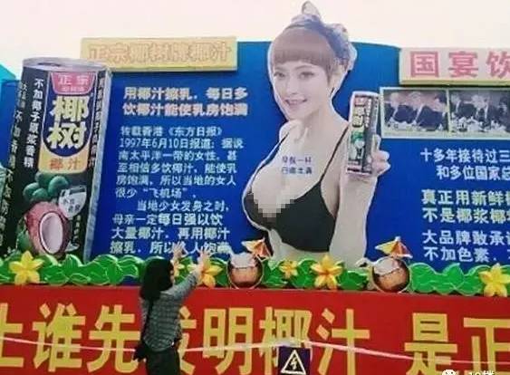 不少网友晒出了椰树牌椰汁的线上线下广告