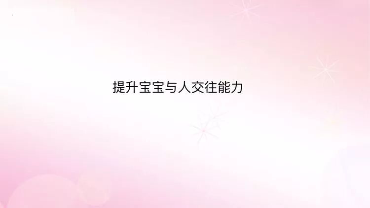 下一个问题,我们如何提升宝宝与人交往的能力。我们人跟社会是相互交往的空间和时间上的关系。我们离不开跟其他人交往,教会小朋友跟人交往对他以后的学习工作都有非常大的帮助。