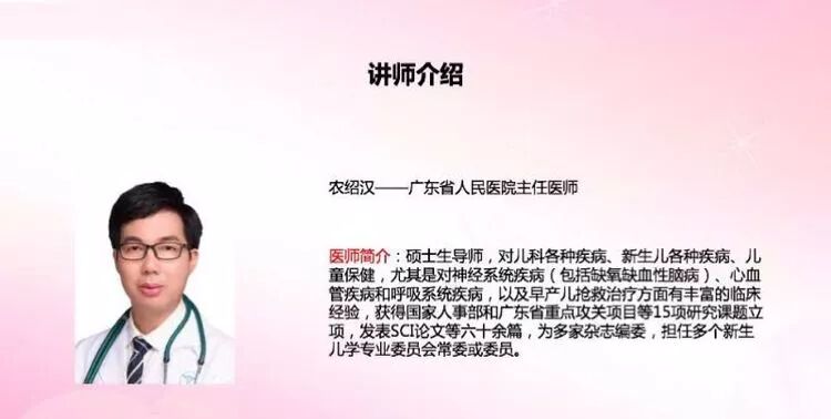 各位小朋友的家长们好,我是广东省人民医院新生儿科的农绍汉医生。今天来和大家共同探讨宝贝的智力开发的有关问题。