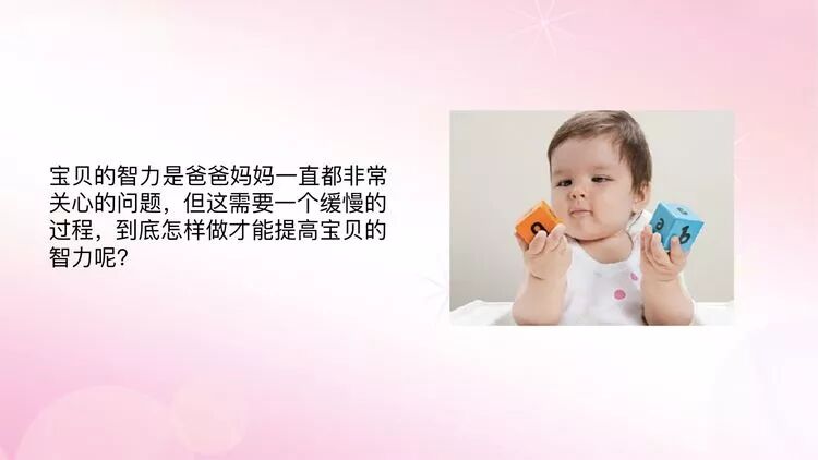 我们都知道宝贝的智力开发是一个非常漫长的过程,也是爸爸妈妈都非常关心的问题。大家也可以看到我们很多人从胎儿期的胎教到新生儿以及婴儿期的早教再到儿童教育,小学中学大学等等这方面教育,这就是智力开发的非常非常漫长的过程。那么这个时间段里我们怎么样才能提高宝贝们的智力。