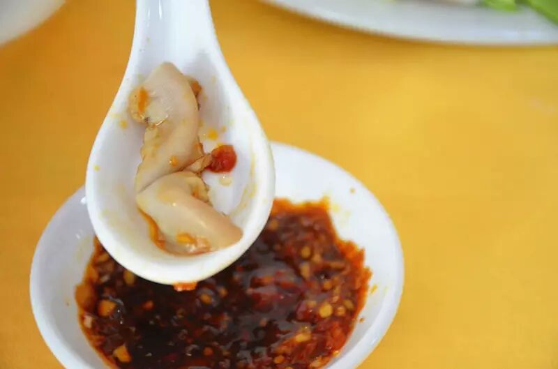 劲辣的辣酱问你惊未!是老板独创的辣椒酱,慎点!BTW,鸡质好嫩滑,肥而不腻!去过海南吃文昌鸡的朋友肯定懂!