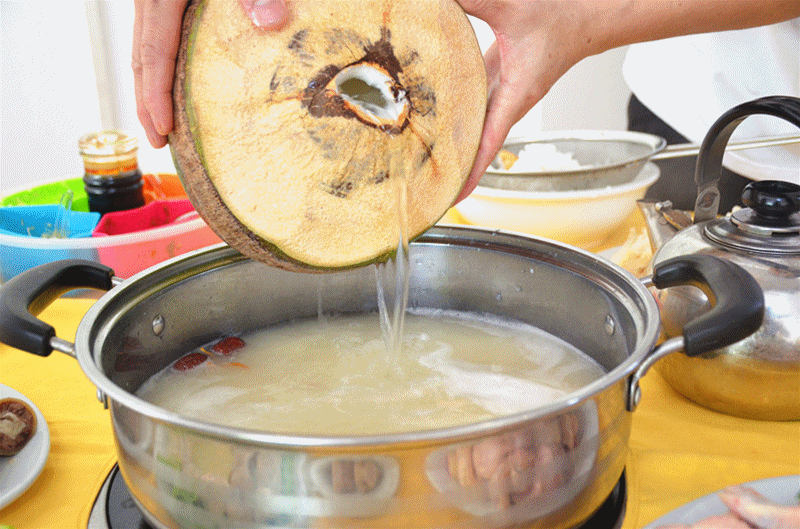 椰子汁清如水、甜如蜜,既天然又清凉解渴,让整个汤头都提鲜了!