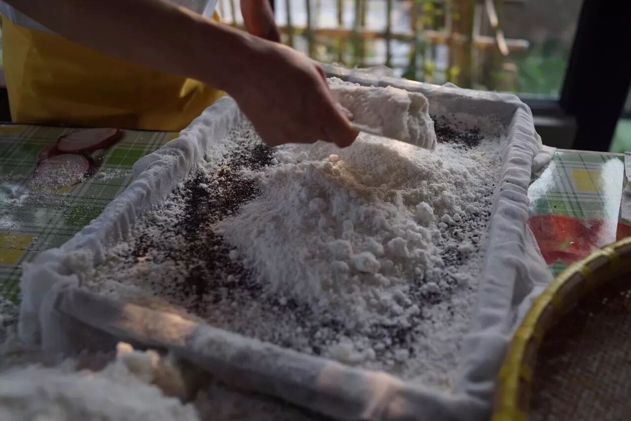 第四步:将搅拌好的粉静置一段时间,充分吸收水分后过筛成细粉;