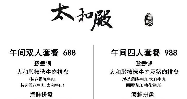 太和殿来头不小、品质不俗,人均500的价格自然也不算便宜,所以针对环球金融中心的商务精英们,此次新店特别推出了两款优惠午市套餐,性价比不要太高!想要拔草的话不要错过哦~