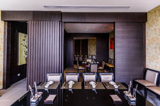 大厅主要是红黑黄三色呼应,大气、沉稳,中式的装潢风格精致不失现代感。