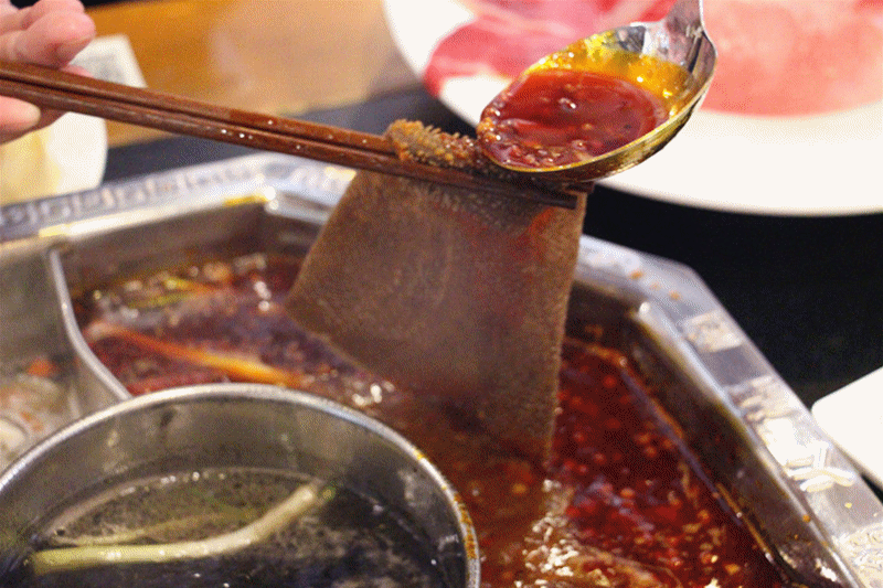 吸满汤汁的毛肚入口嘎吱嘎吱
