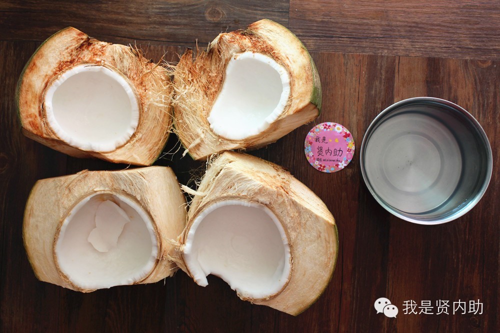 没有鲜椰子买超市老椰子也可以,破老椰子壳可以用菜刀的背面,对着椰子壳的中线敲,敲几下椰子壳就会有裂纹了,然后可以顺着裂纹用刀撬开,不知道怎么弄的小伙伴可以让男士帮忙。鲜椰子没这么硬,可以直接用刀劈开。