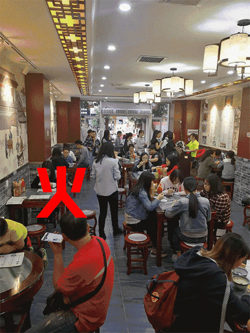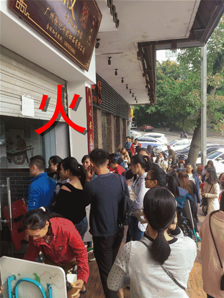 店外全部排满了人,店内坐满了人!