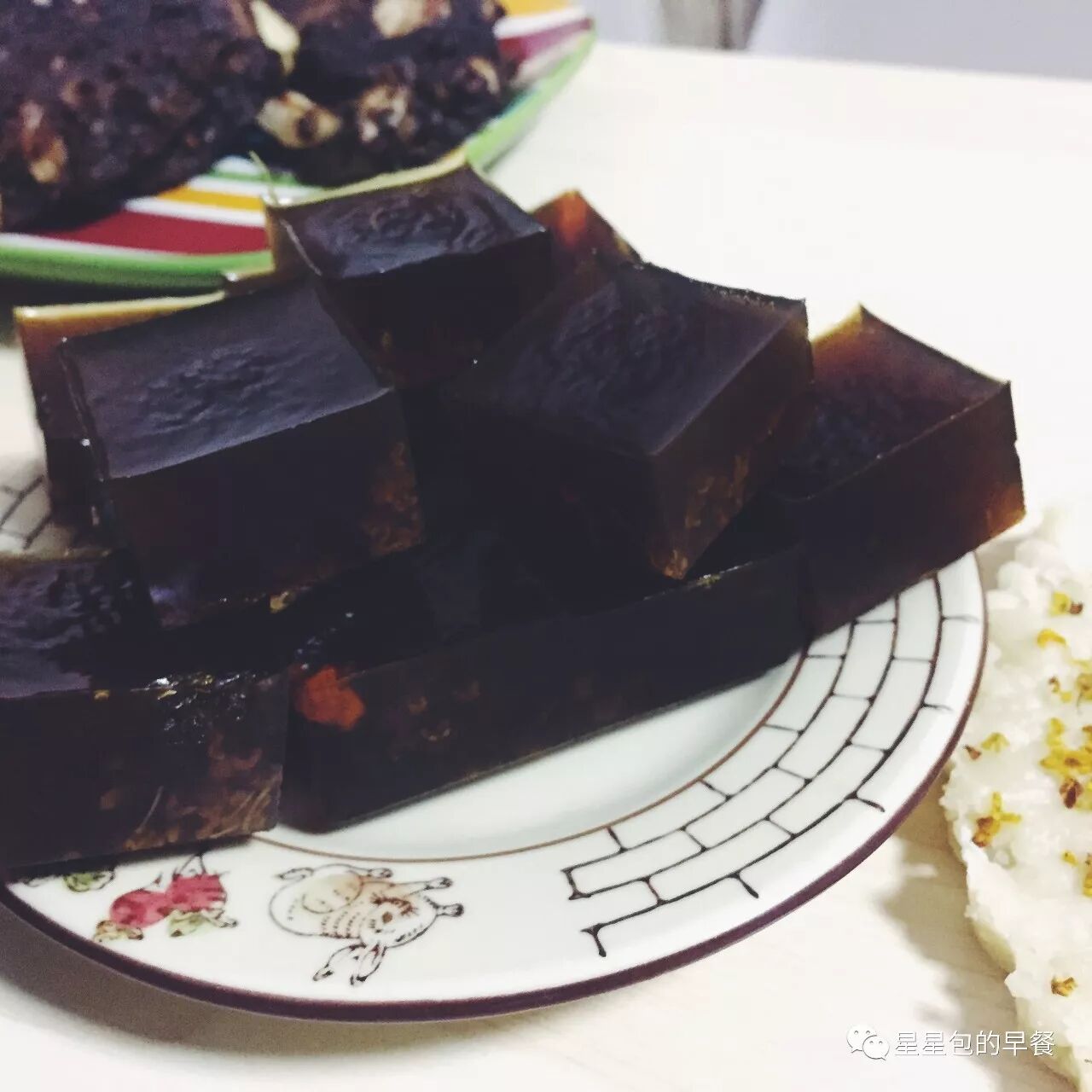 昨天桂花冻做失败了,今天再试了一次,居然成功啦!你在外面吃的桂花冻应该都说透明的,我做出来黑黑的是因为放了红糖的关系。