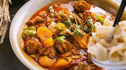 大盘鸡不仅是民族团结的最佳利器,更是同学同事交流感情的必点菜。还有什么能让一桌人上菜前眼冒绿光地期待,上菜后风卷残云扫荡,又在吃面时其乐融融地互帮互助呢?