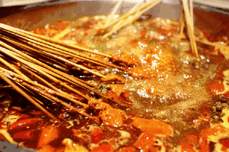 你很难略过霸占城区半条街的串串美食——金牌钵钵鸡 ,各类的食物一次次浸泡、沉淀、入味,愈发浓郁而热烈,红油味上面满满的一层芝麻,一口咬下去油汤汤都跟到冒!古真记钵钵鸡,叶婆婆……到底谁才是你乐山钵钵鸡界的扛把子?