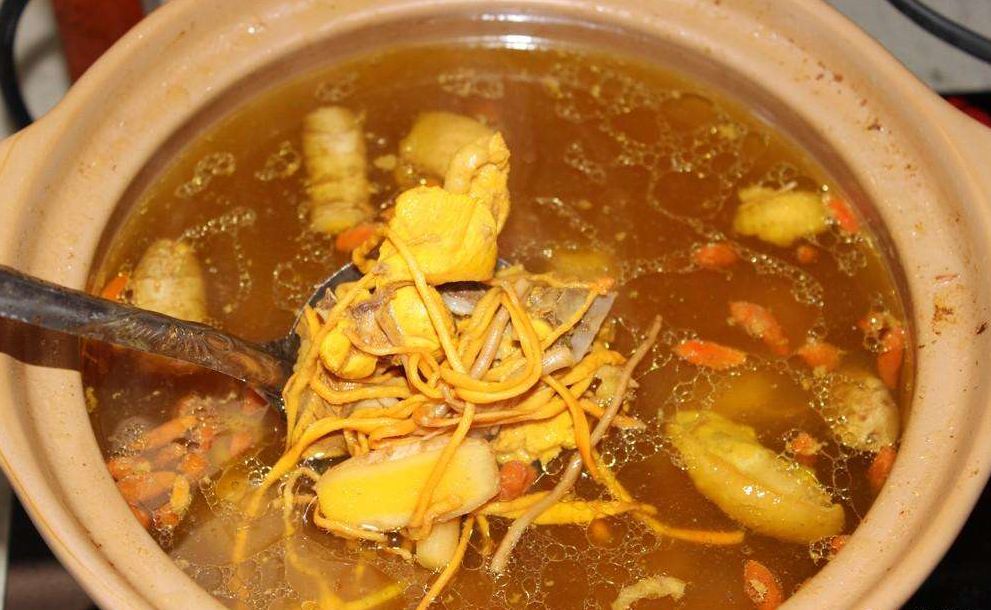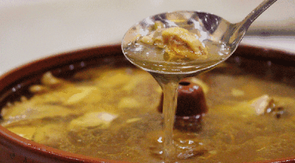 这道特别的料理完全用蒸汽水来蒸制,一滴水都不加,完全靠着六个小时不停地蒸,水汽不断凝结滴到了锅里,鸡肉中所有的滋味都融进汤中,绝对是去油腻的养生秘方!
