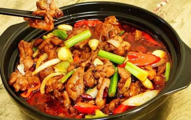 △ 鸡公煲有加汤和不加汤两种,本地人更喜欢后者,辣味更足