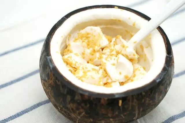 椰皇:椰皇又名椰王,椰青成熟到表皮成黄色,再经过去皮、抛光、打磨就是椰皇了。椰皇汁和肉都比较淡,可以用火烧一下,更加香甜,椰肉更嫩滑爽口,也可以挖出来做椰蓉、椰丝或者椰子饼。