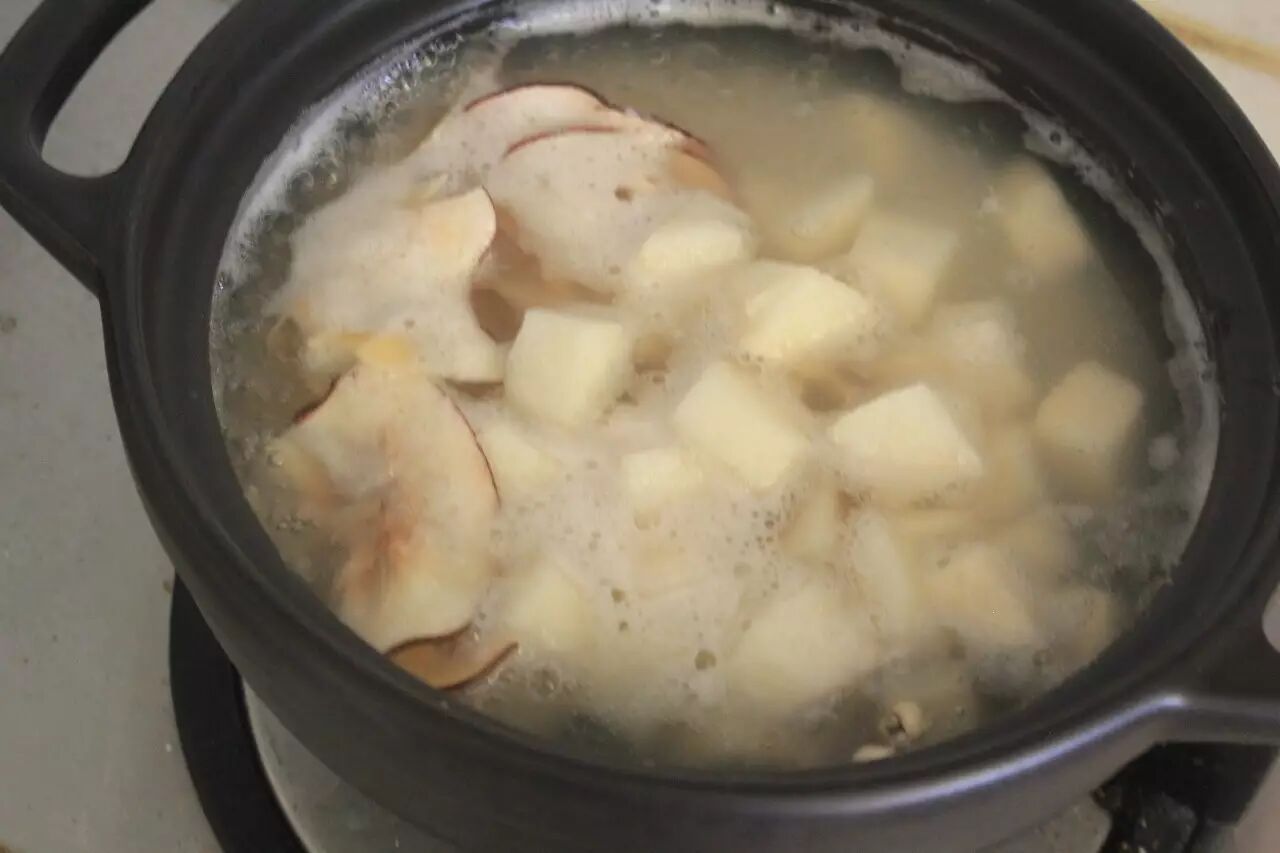 Step 2 水开之后把川贝,海底椰放进锅里慢慢熬。