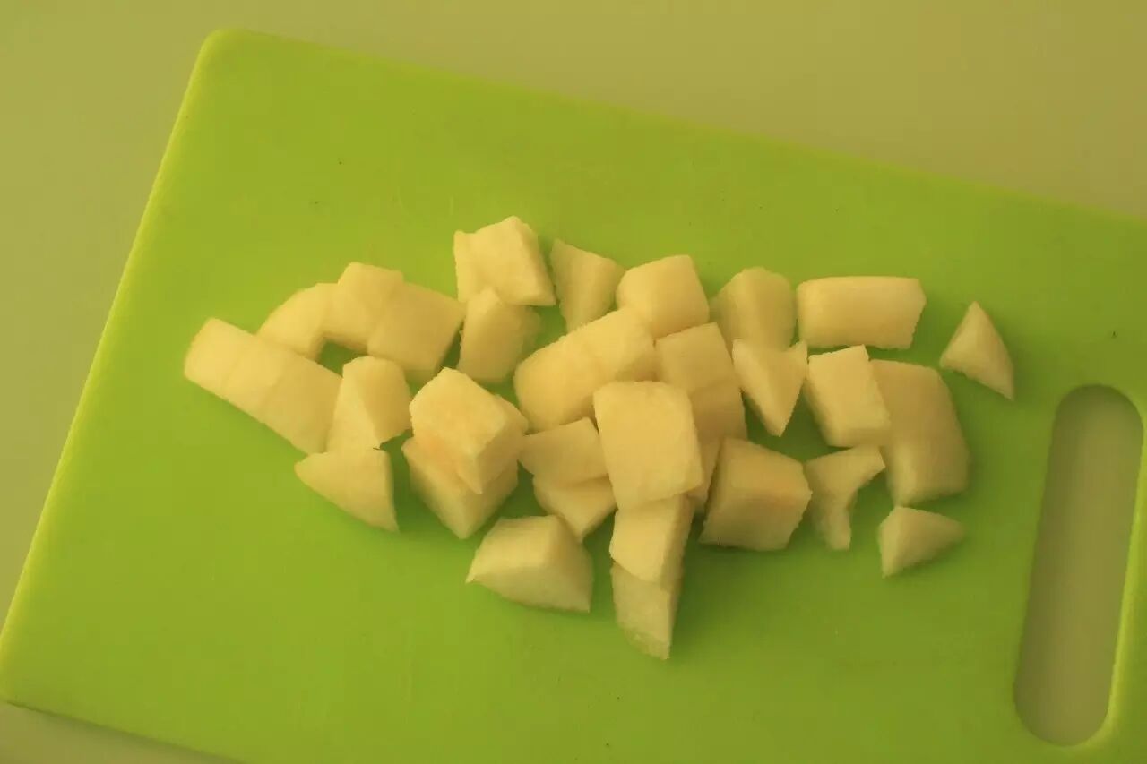Step 3 等的功夫,把梨切丁。不要太早切,要不然就变色不美腻了!