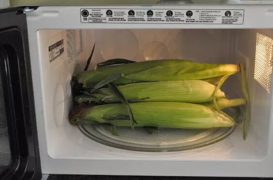 首先用将整个玉米连同外面的叶子一起放进微波炉中加热,约4分钟左右。