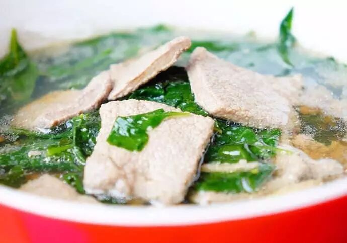 做法:先将猪肝洗净,切成薄片,并用豆粉调拌后置油锅炒熟,铲出备用。枸杞叶、桑叶洗净后入锅,再加水,旺火煮沸后将加入炒好的猪肝,改文火煨半小时,加食盐调味后即成。