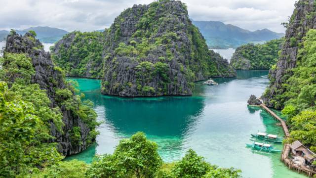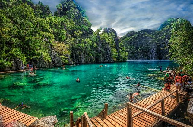 位于科隆岛的凯央根湖(Kayangan)号称菲律宾最干净的湖,已经成为了科隆的旗舰型目的地,四周的喀斯特峰林像极了越南芽庄的海上喀斯特,水晶般清澈的水质让人仿佛置身九寨沟,而且除了远观,你还可以下去游泳、潜水,探秘神奇的水下风光。与纯粹的淡水湖相比这里还能让你漂浮在湖面,悠哉地享受阳光。