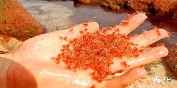 这层红色的东西,并不是泥土或海藻,而是无数红色的小螃蟹: