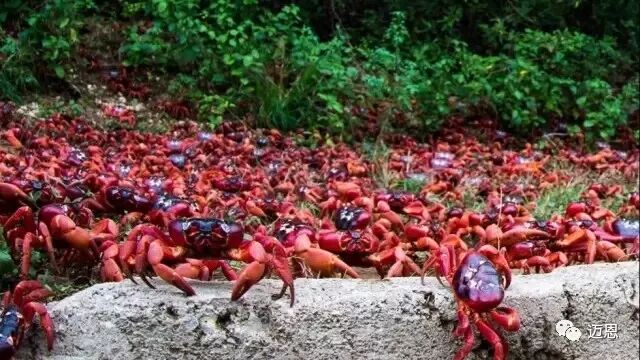 一段时间后,孵化出来的小红蟹又开始向森林迁移。这段繁殖期内,整个岛都像被染上了一层红色。小伙伴们一起来感受下真正的密恐: