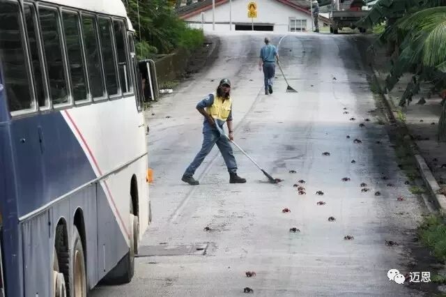 而这个时候,整个岛上的交通都要为红蟹让路。