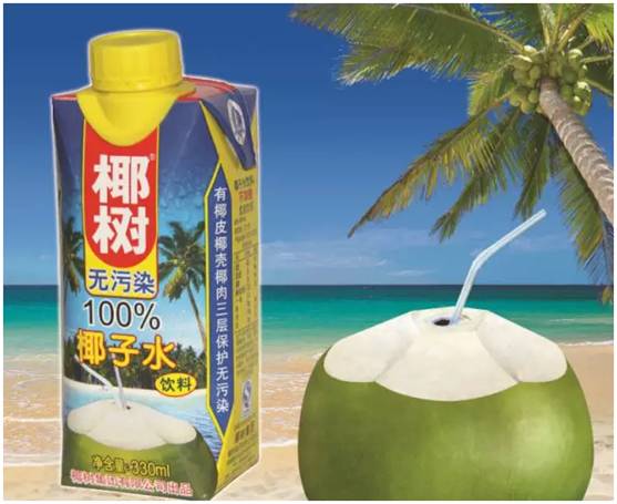 椰树牌100%椰子水,摘取5米高的椰子果,取其中的新鲜椰子水生产,不加糖,不加香精,不加防腐剂,不掺水,保证了椰子水的原水原味。开盖简易,休闲美味,是运动后迅速补充体液的首选。