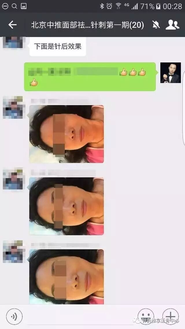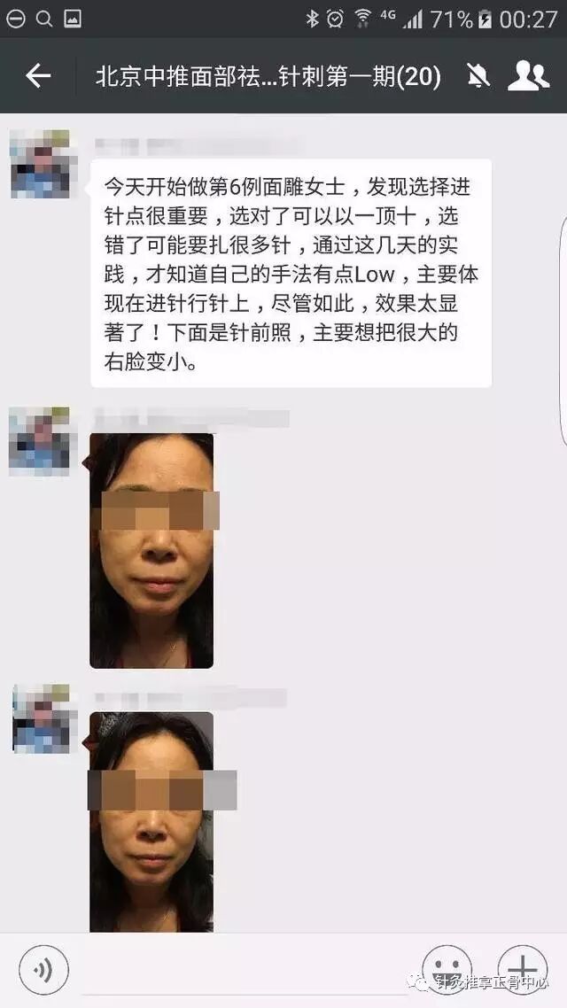 现场为学员操作,面部微雕针刺技两次治疗后的效果 看下图。