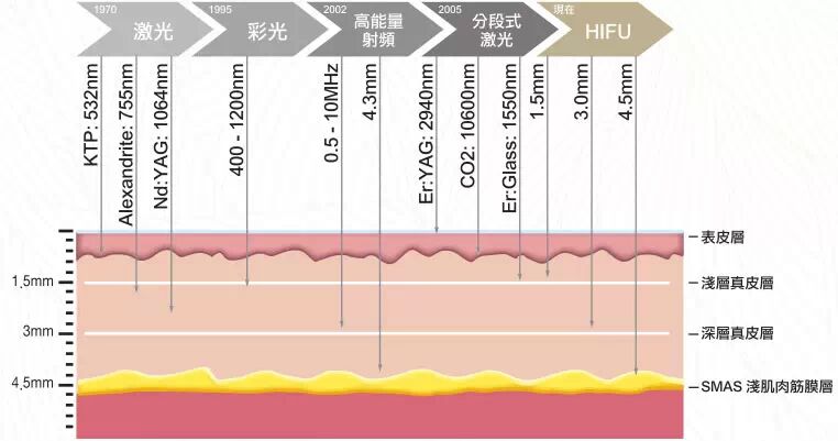 以往医学美容的治疗主要是针对表皮层至真皮层,而超声刀将原本用作治疗病变组织的医学技术改良,成为突破性之美容新科技。