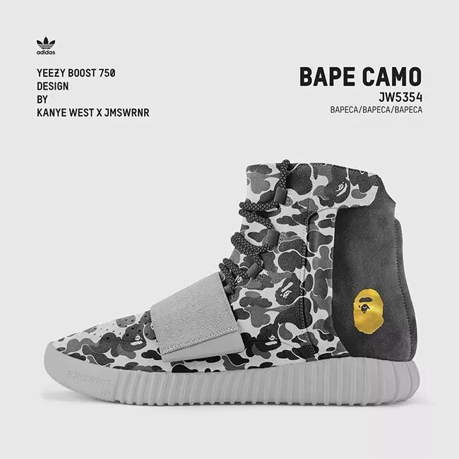来自英国的设计师 James Warner 就带来了他对Yeezy 750 Boost的设想,除了 BAPE、Supreme 和 CdG Play 几个大牌单位的联名配色,还呈现了他设想中的 Red October、中国新年等多个配色。